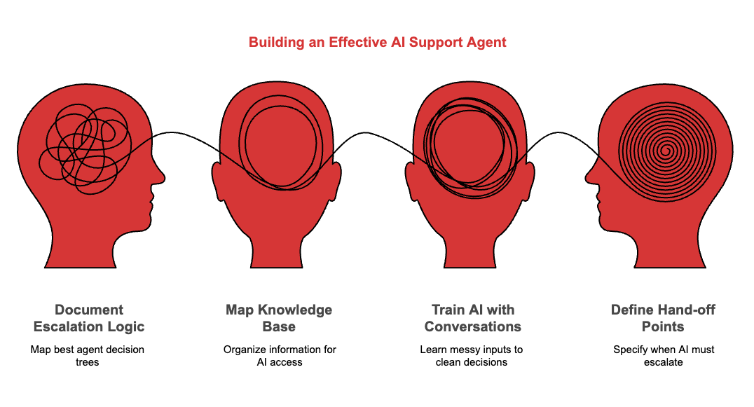 The real fix works in the opposite direction. You document the escalation logic your best agents already follow, map the knowledge they rely on, feed the AI real conversations so it learns how messy inputs become clean decisions, then define exactly where it must stop and hand off to a human.