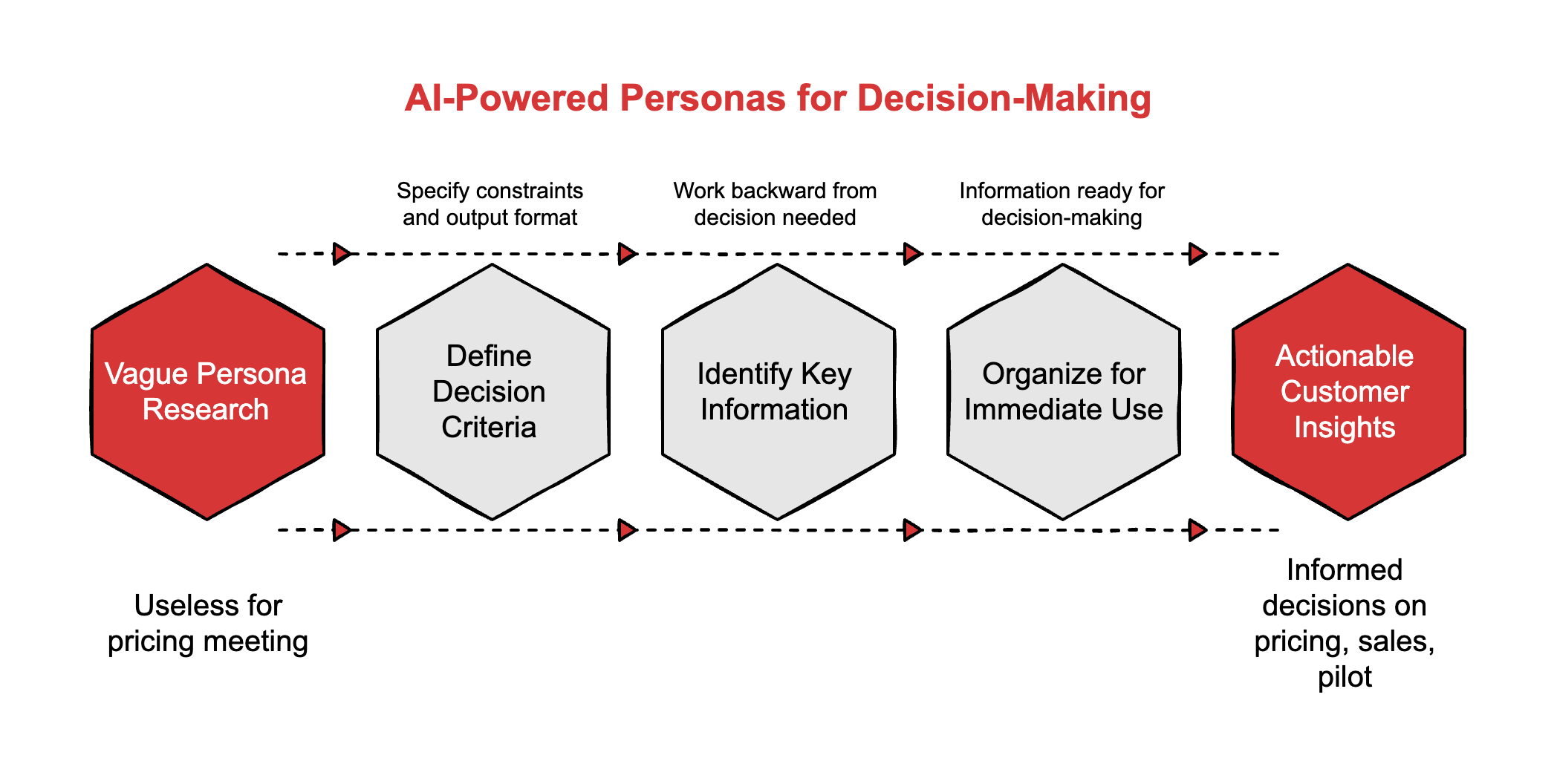 The method works because it inverts the standard process. Traditional personas start with data collection and hope insights emerge. AI-assisted personas start with the decision you need to make, then work backward to identify which customer information affects that decision.