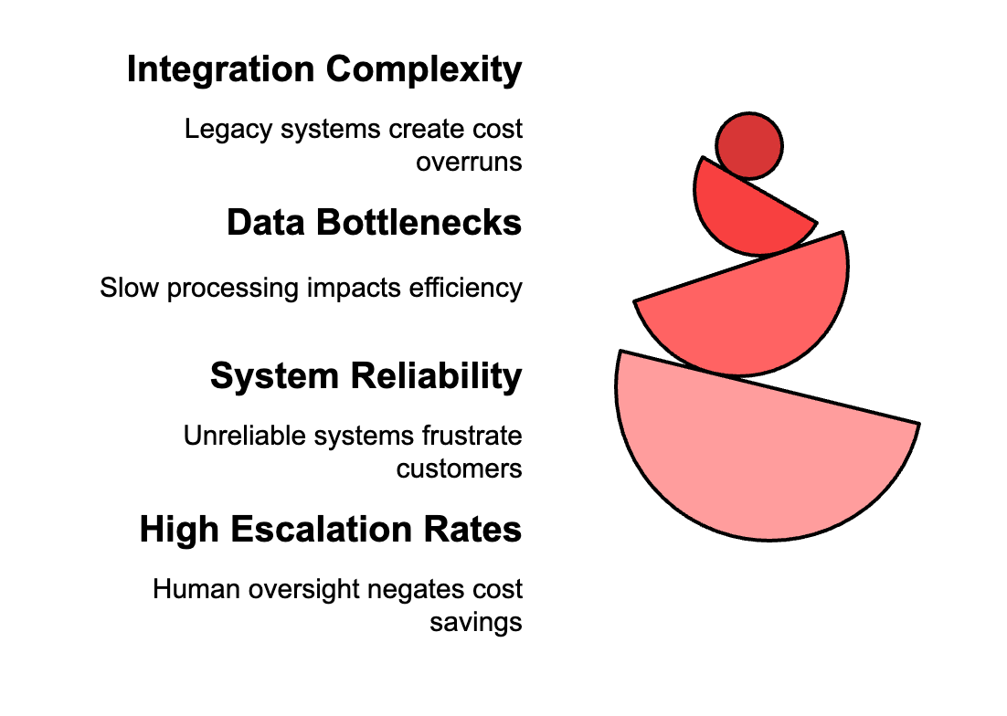 Discover's Google Cloud AI integration achieved 70% improvement in call handle time, yet still requires significant human oversight for complex issues. The promised cost savings evaporated when escalation rates remained high.