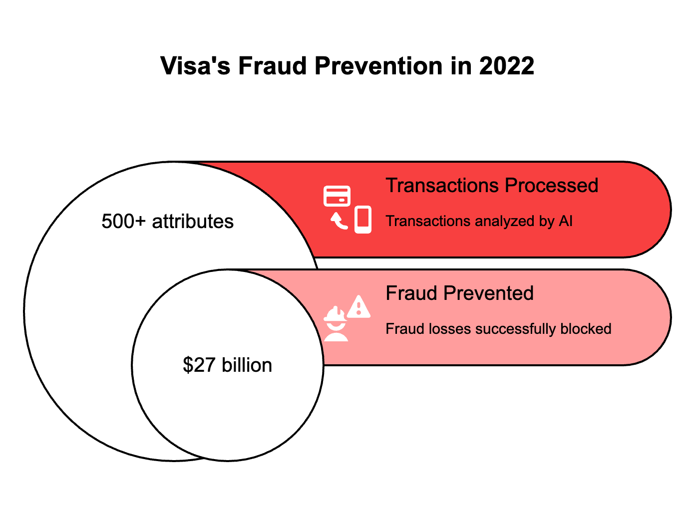 Real-time fraud detection represents the payment industry's biggest AI success story. Visa's Advanced Authorization system processes every transaction across their network in under 50 milliseconds, analysing 500+ attributes through hundreds of AI models. The system prevented $27 billion in fraud in 2022 alone.