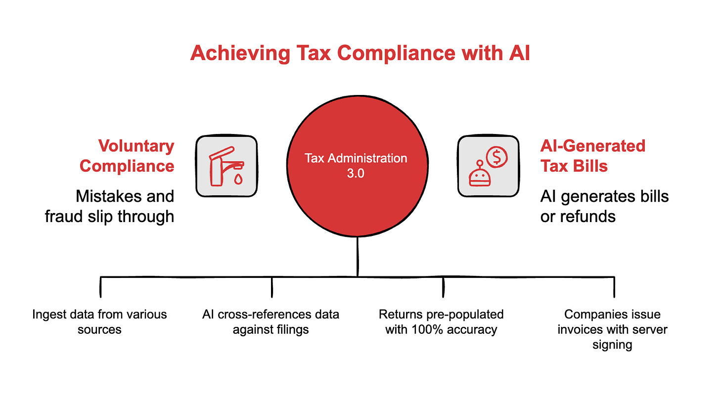 The trajectory is clear: the tax return is dying. Within a decade, most citizens will receive a bill or a refund generated by AI, with the option to accept or challenge.