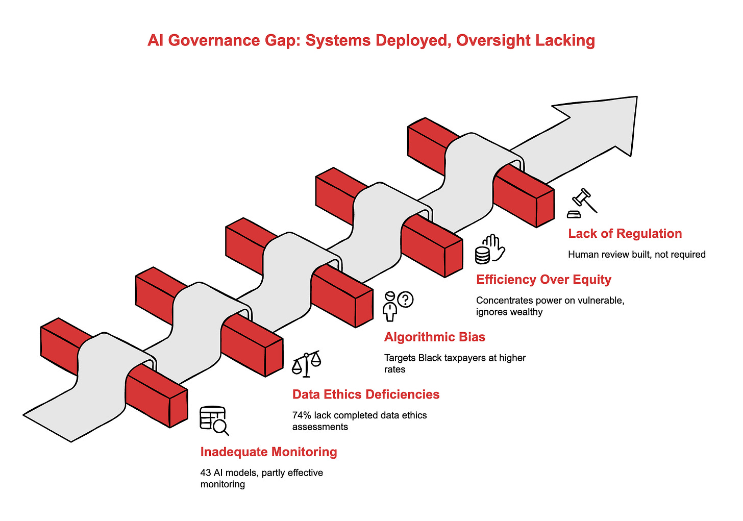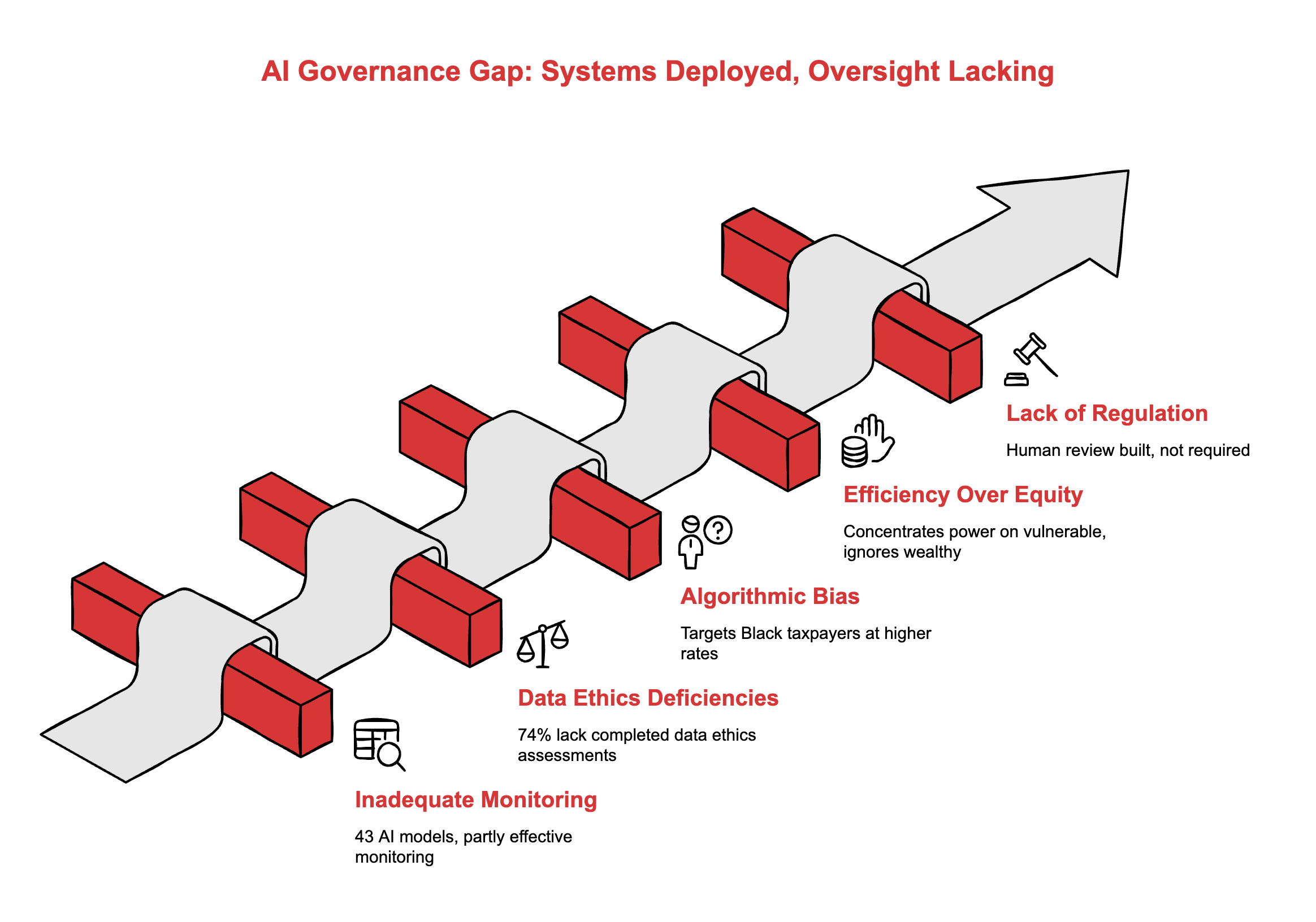 United States: In 2023, Stanford researchers working with the Treasury Department proved that IRS audit selection algorithms targeted Black taxpayers at 2.9 to 4.7 times the rate of others. The algorithm wasn’t explicitly racist. It was optimised for efficiency. Auditing low-income Earned Income Tax Credit claims is cheaper than auditing complex business returns. Black taxpayers are overrepresented in EITC claims due to systemic economic factors. The algorithm learned the pattern.