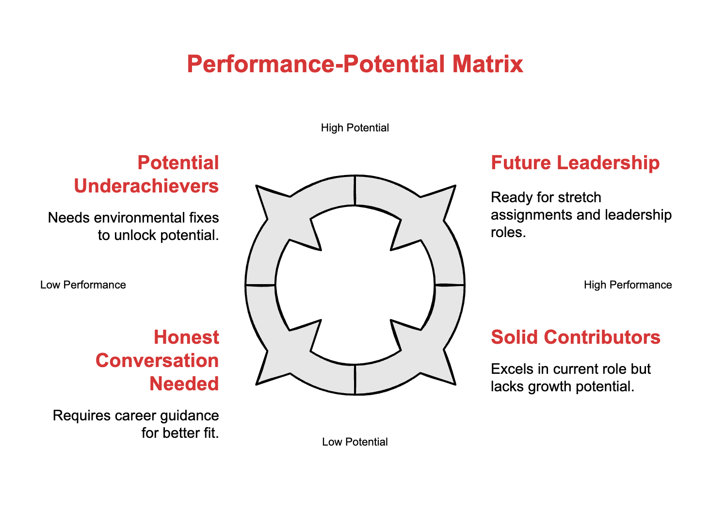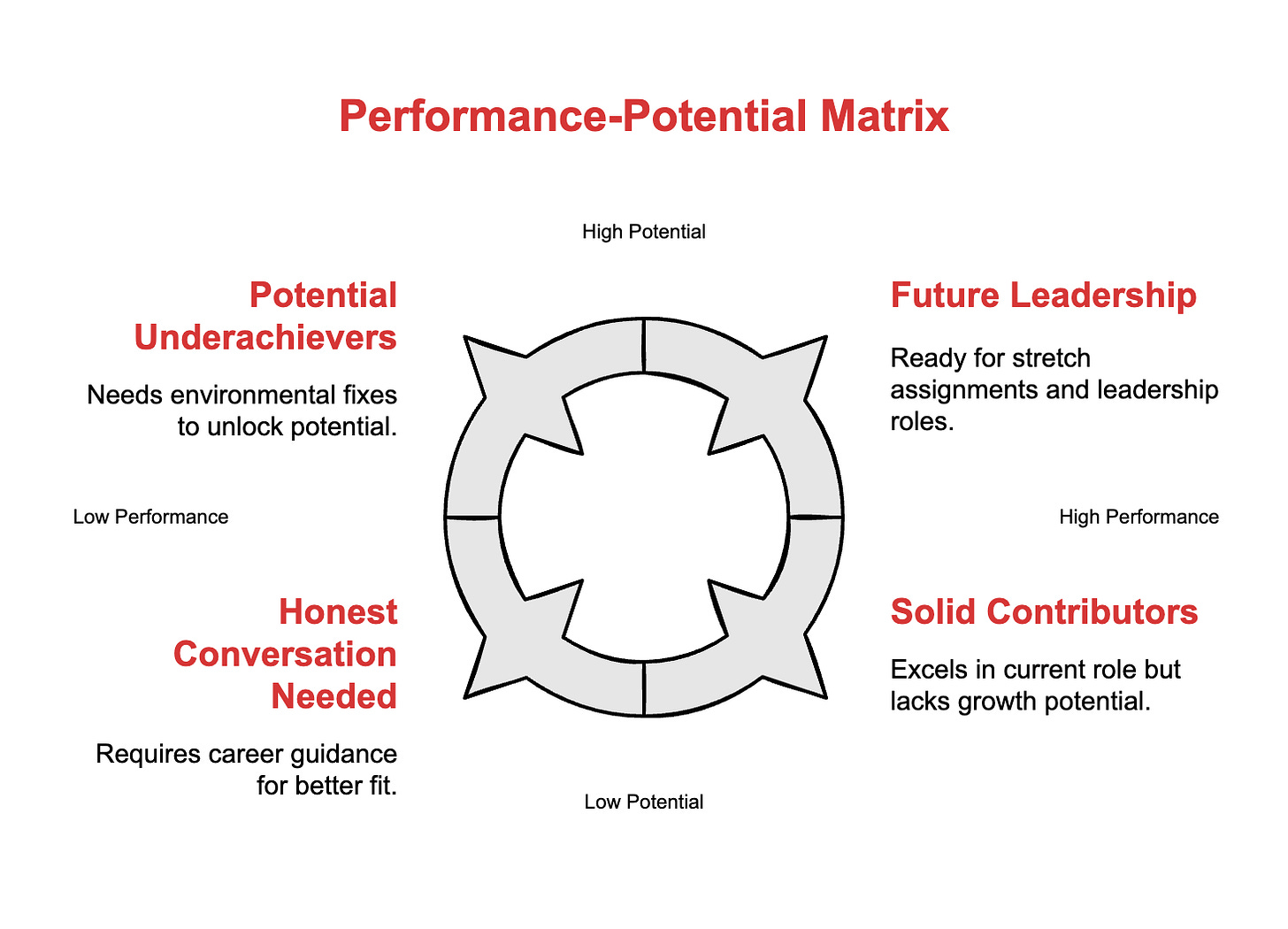 HR professionals have used a tool for decades that solves this. It’s called the 9-Box Grid, and it maps every employee on two axes: current performance and future potential. Nine boxes. Clear categories. Specific actions for each one.