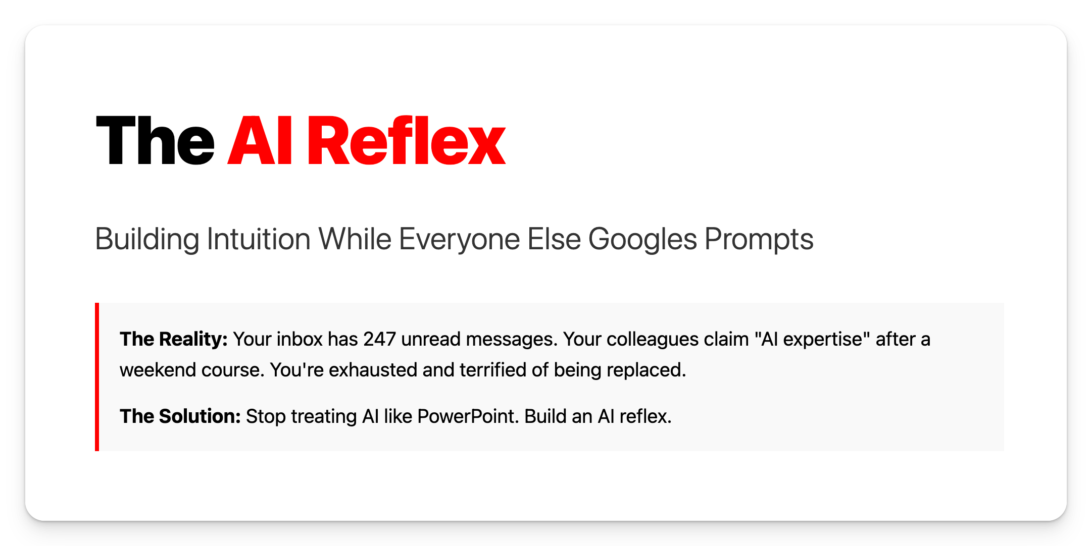 The AI Reflex: Building Intuition While Everyone Else Googles Prompt Templates