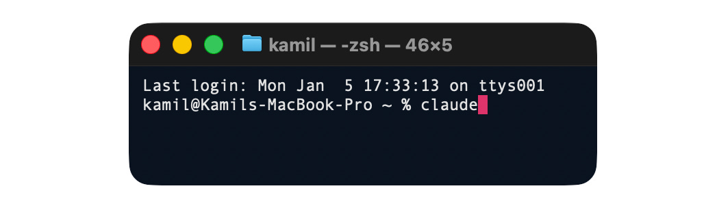 Type “claude” and press Enter. A browser opens. Log in with your Claude account (Pro, Max, or API credits). This happens once. Your credentials get stored.