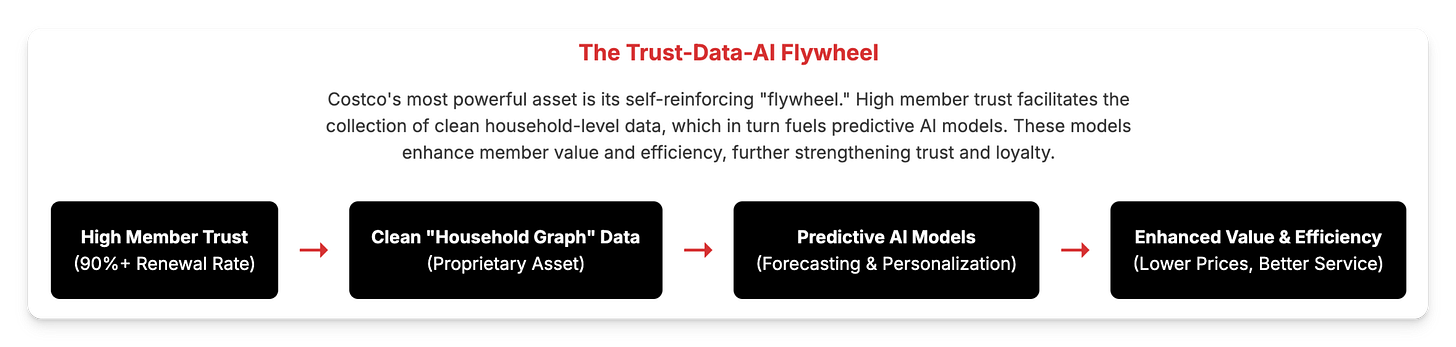 Costco sits on something competitors can't easily replicate: pristine household-level data. Every purchase ties to a member account, creating what they call the "Household Graph". This isn't individual browsing history. It's longitudinal records of entire households' essential consumption patterns.