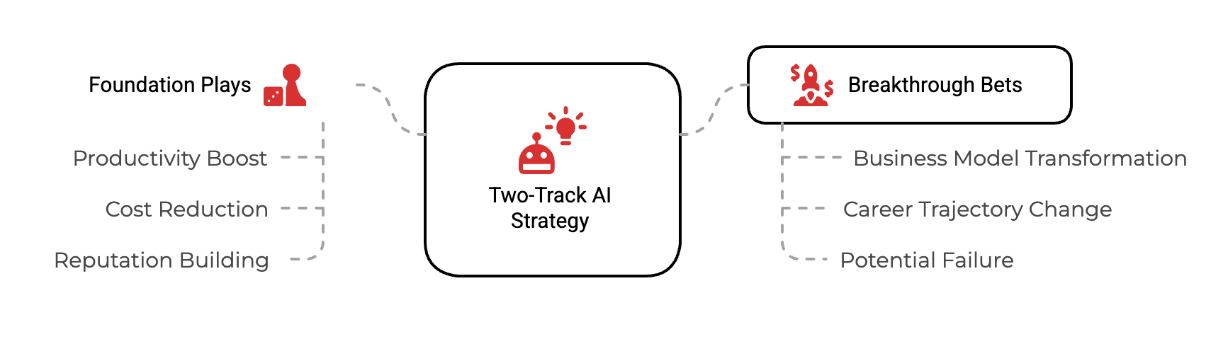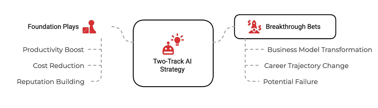 Meanwhile, a small group of professionals is quietly lapping everyone else. These people aren't smarter or better funded. They've just figured out what nobody's talking about: the power isn't in choosing between small, safe AI moves or big, risky ones. It's in deliberately doing both.
