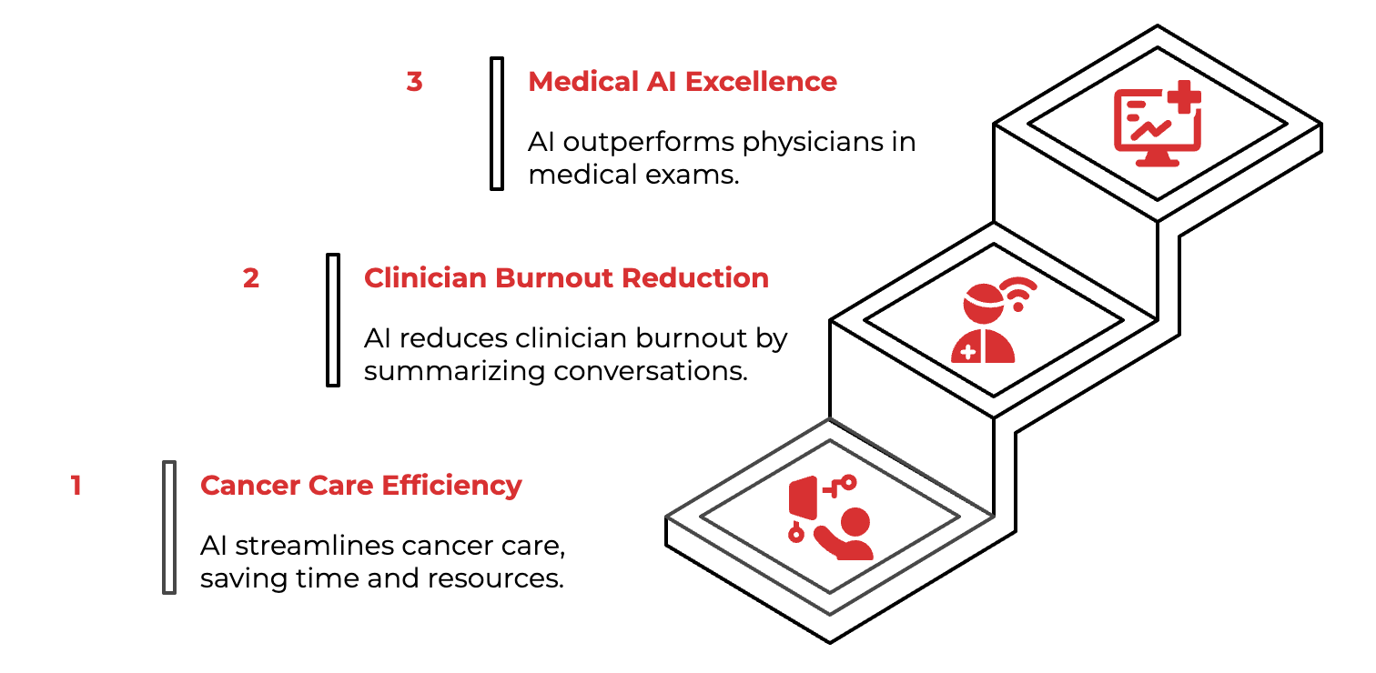 At Mayo Clinic, they've moved beyond pilot projects to what they call "AI Factories." They're not just using one AI tool. They're deploying hundreds of AI applications at enterprise scale. Their latest win? Reducing discharge summary writing from 90 minutes to 10 minutes using generative AI.