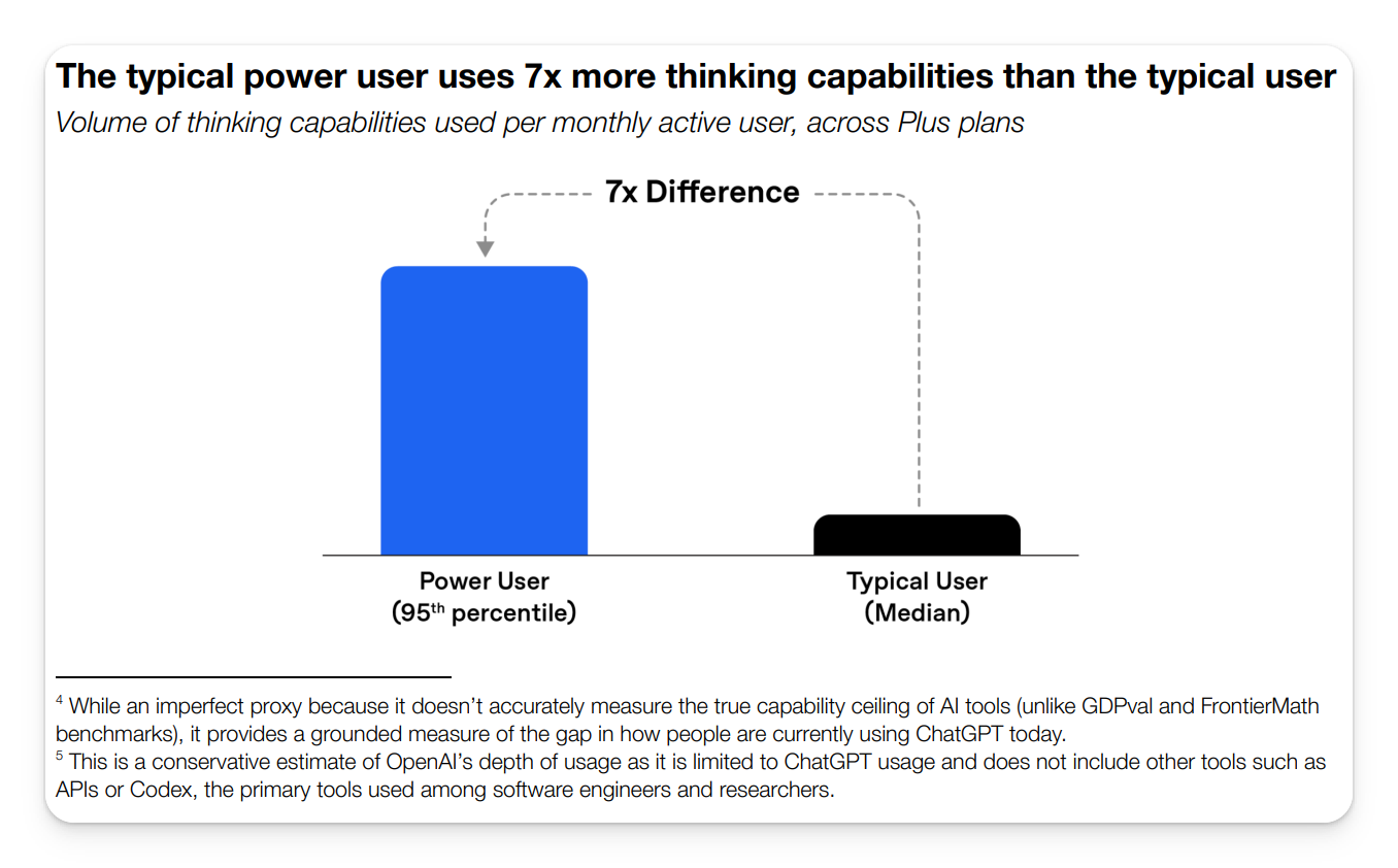 Their data shows power users extract roughly six to eight times more value from the same AI tools as typical users. Same subscription. Same model. Wildly different results.