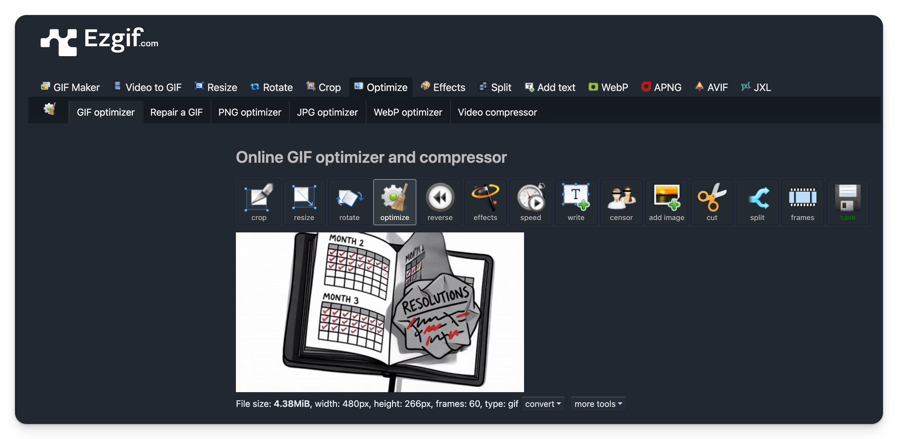 EasyGIF converts animations to lightweight GIFs. I keep them under one megabyte so they load fast and don’t bloat your inbox.