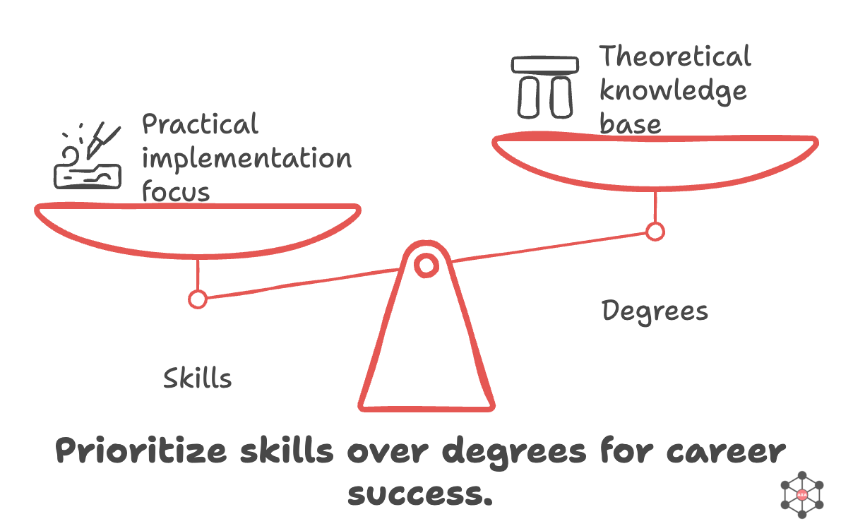 Skills will matter more than degrees - focus on practical implementation experience