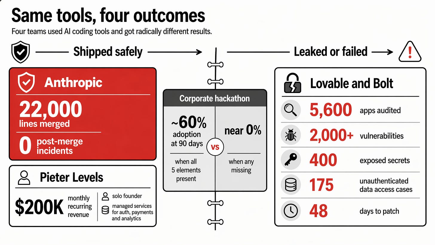 Lovable left a user data leak open for 48 days before patching it. Bolt was not far behind. Same models. Same tools. The gap between those two outcomes is the whole subject of this edition.