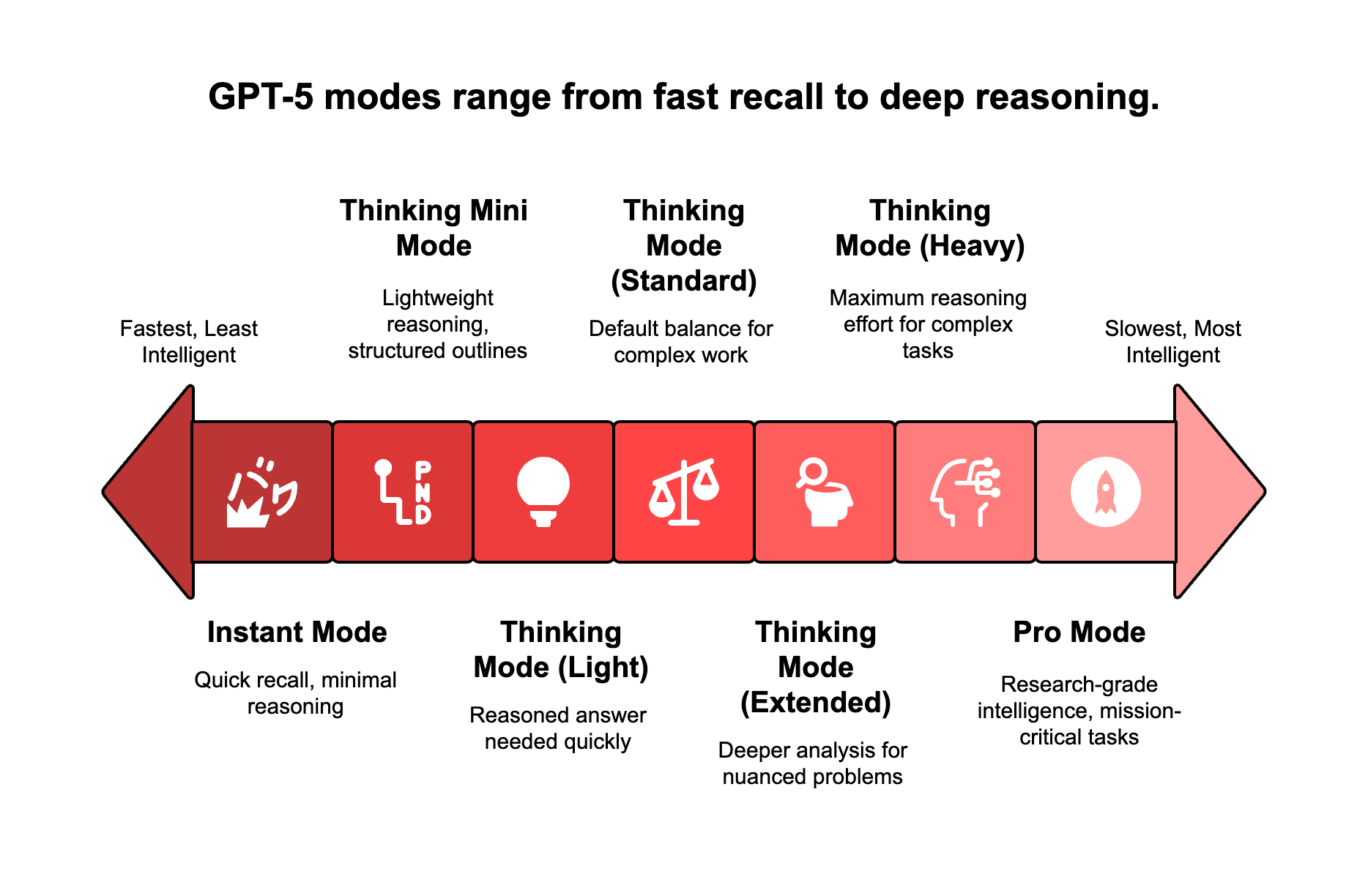 Here's what nobody tells you about the five ChatGPT modes. Most people think more thinking time equals better answers. Wrong. You're optimizing for the wrong variable.