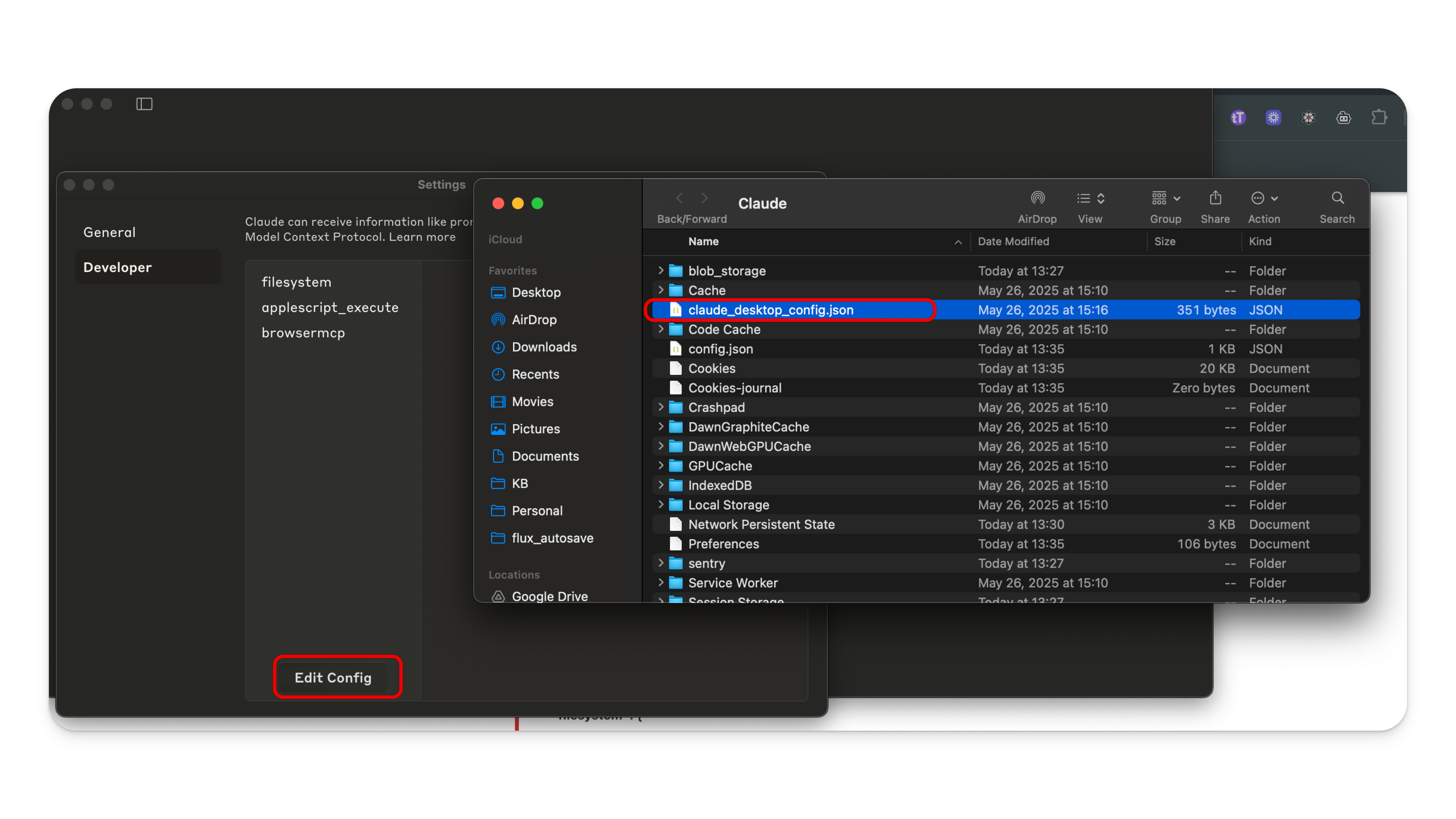 Add this to your Claude config file (Settings > Developer > Edit Config). This comprehensive setup enables filesystem access, AppleScript execution for Mac tasks, and browser control. Remember to change "USERNAME" to your Mac's username for the