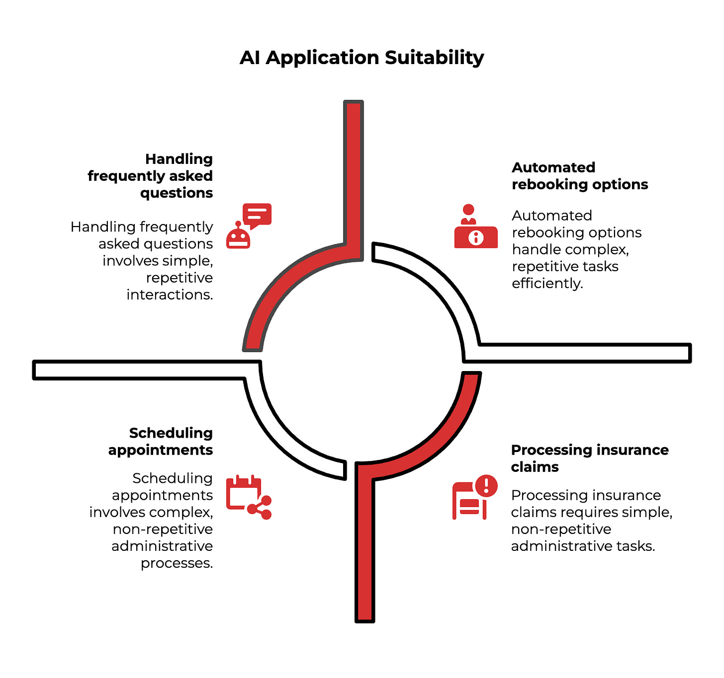 Administrative and Form-Based Tasks: AI is excellent at guiding users through structured processes. This includes processing insurance claims, scheduling appointments, or providing status checks on orders. These are essentially smart forms with a conversational interface.