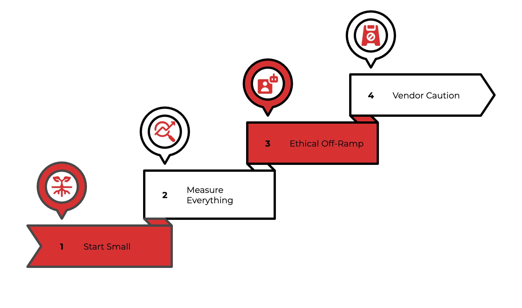 Build an Ethical Off-Ramp. Every AI system must have a transparent and easy way to hand off to a human. AI should never make irrevocable or opaque decisions, like denying an insurance claim or a healthcare request. It should handle the drudge work, not replace judgment.