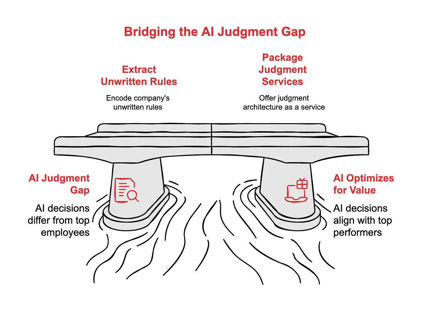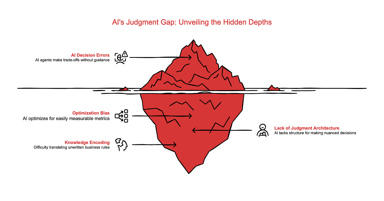 If you’re selling AI consulting services, judgment architecture is a new offering waiting to be packaged. Every company deploying AI agents is running into this wall. They need someone to help them extract their unwritten rules and encode them. That someone could be you.