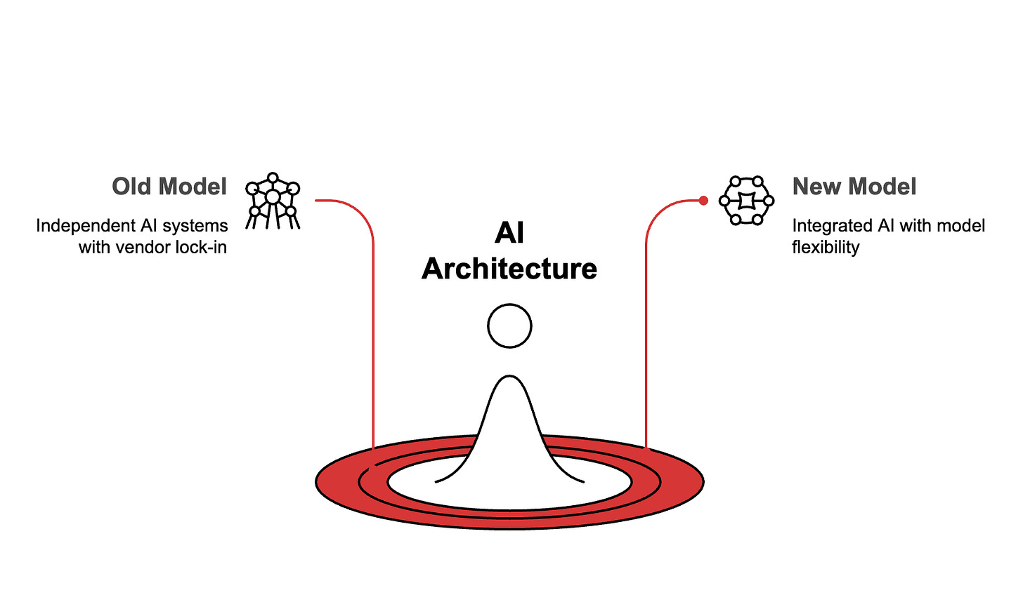 Every company deploying AI faces the same architectural choice Marriott faced. Build vertically, one siloed project at a time, and watch each one become obsolete before the next one ships. Or invest in horizontal middleware that lets you swap models and reuse capabilities, knowing the upfront cost is brutal but the compounding payoff is real.