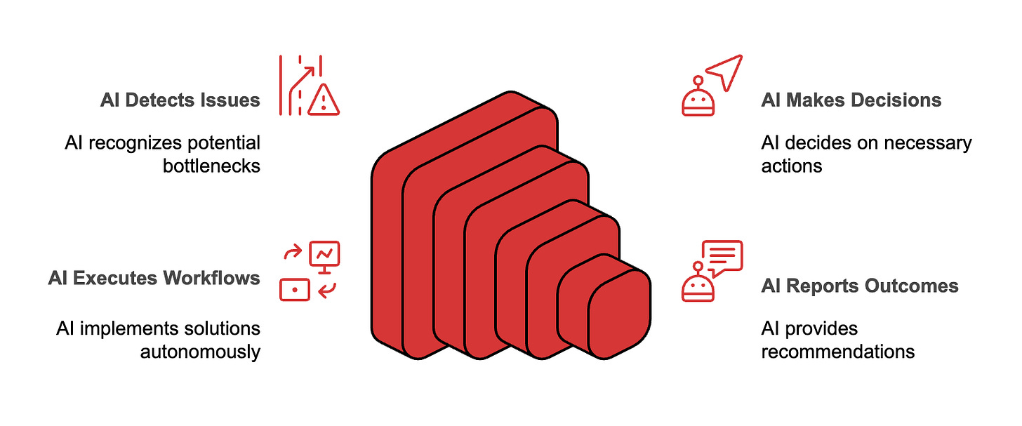 AI detects, decides, executes multi-step workflows, then reports with recommendations.