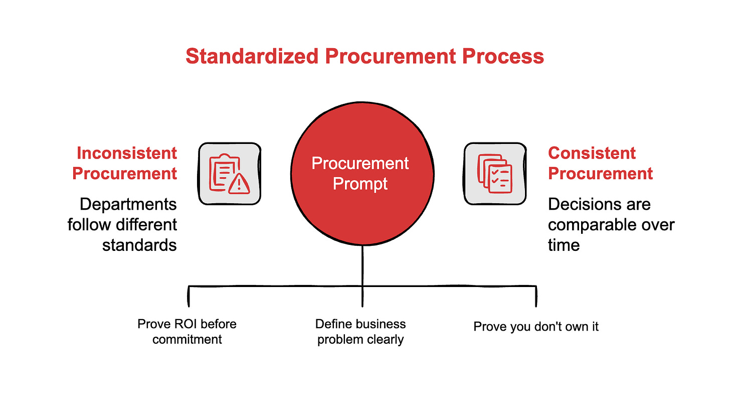 A procurement prompt standardizes evaluation so decisions become comparable over time. You start seeing patterns. Which vendors deliver. Where assumptions diverged from reality.