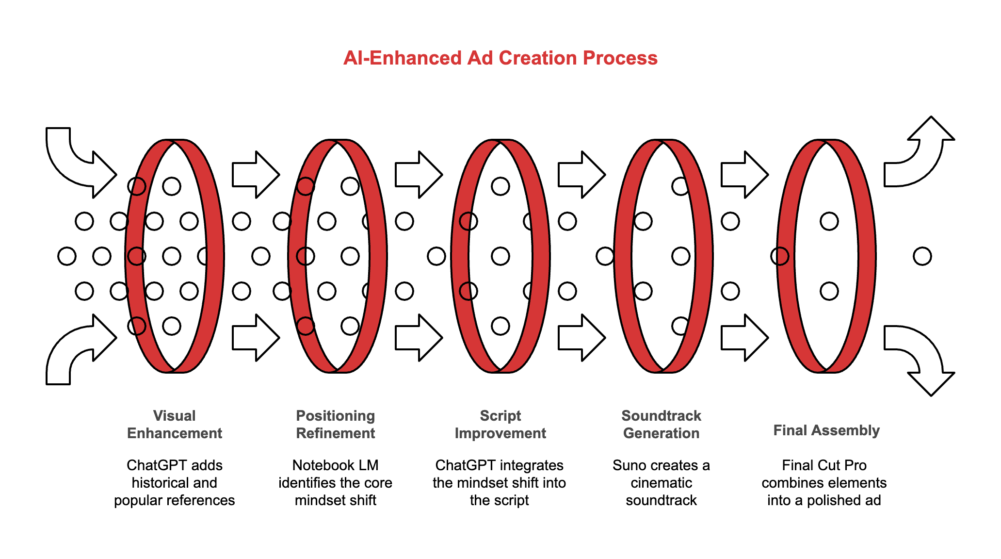 The revised script had the positioning locked in. The historical references weren’t decorative anymore. They reinforced the central message: the tools change, but the winners are always the ones who direct the work.