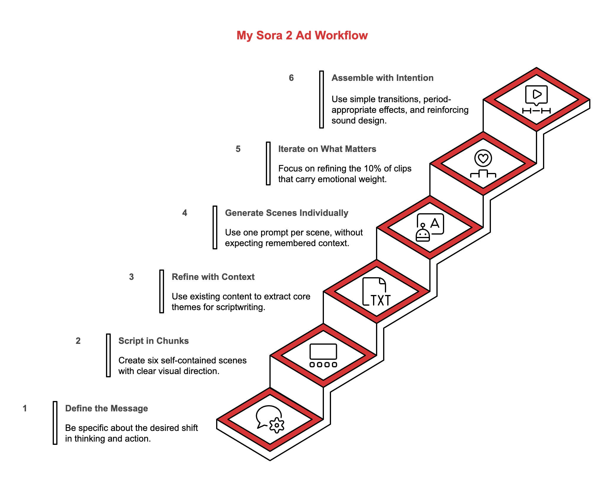 Define the message. Not “make a video about AI.” Be specific: what shift in thinking do you want to create? What action do you want people to take after watching?