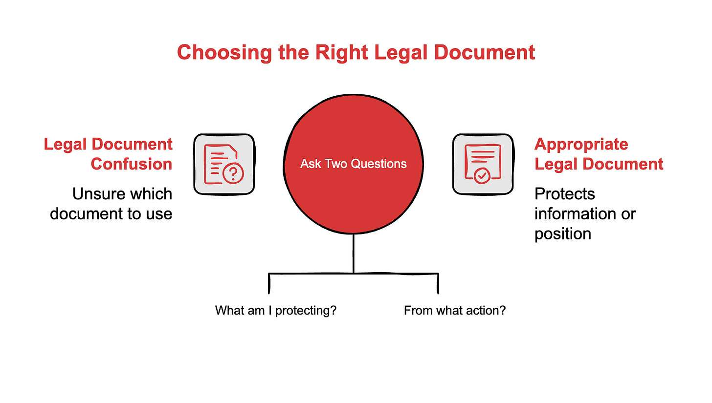 Sometimes you need neither. A freelance designer making your pitch deck probably just needs a standard contractor agreement with a confidentiality clause.