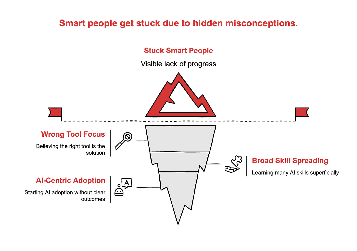 That one sentence captures a pattern I see everywhere. And it starts with a few things people get wrong about AI adoption.
