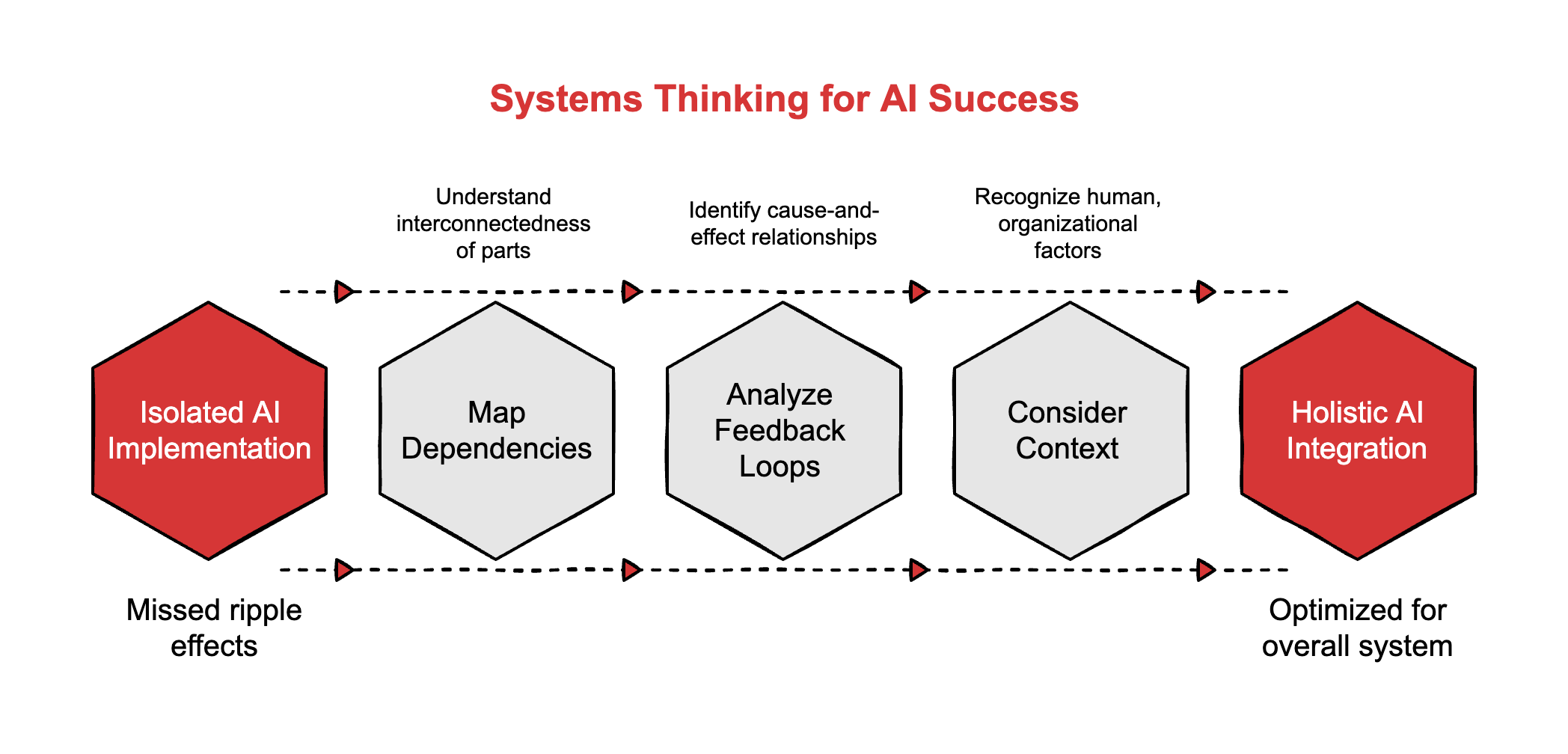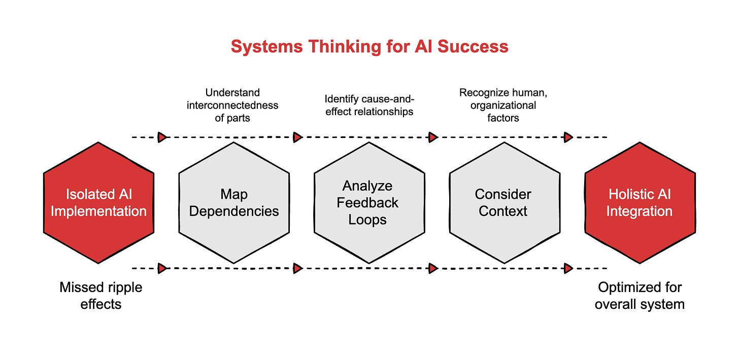 The lesson: small targeted fixes in the right places produce system-wide improvements. AI follows the same principle. Automate the wrong task and you amplify dysfunction. Automate the leverage point and the whole system improves.