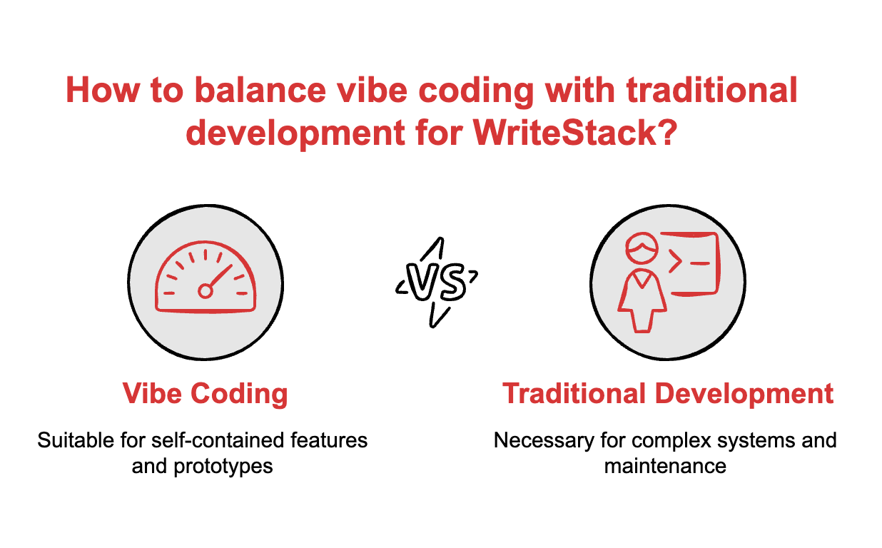 uses Cursor for daily development. AI autocomplete handles 95% of his code. When he builds a feature, he tells the AI which files to reference and what he wants. It generates the foundation, usually on the first try. Then he fixes bugs and adjusts the code for WriteStack’s infrastructure.This is AI-assisted development, not vibe coding. Fast, but not fully automated. What used to take weeks now takes hours, but it requires someone who understands software architecture, debugging, and system integration.