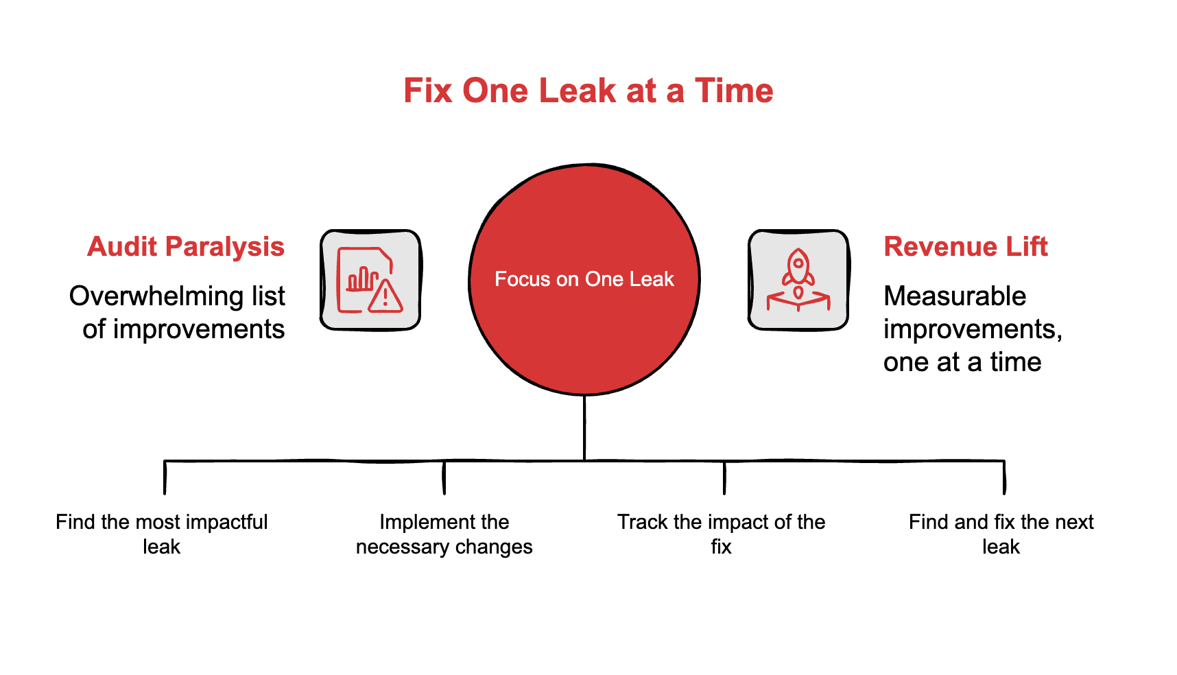 The companies that move fast do something different. They find one leak, fix it, measure, then repeat. Not because they lack sophistication, but because they understand how resources work.