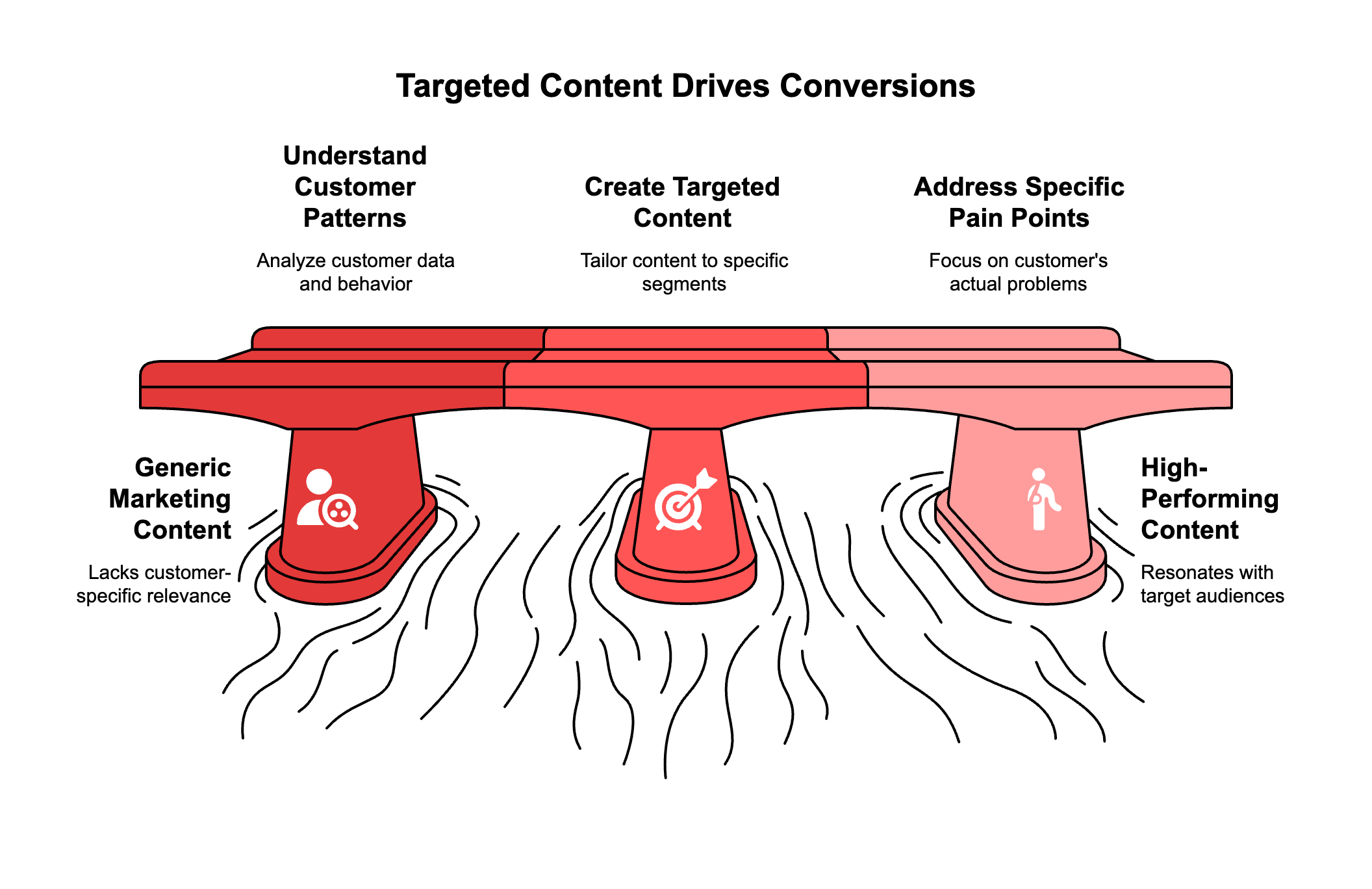 Once you understand customer patterns, you can create targeted content for each segment using their exact language and proven value propositions.