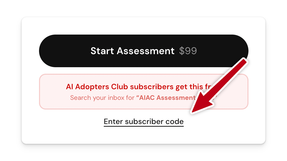 The assessment costs $99. If you’re a subscriber, you have it for free. Search your inbox for “AIAC Assessment Code” and you’ll find your access code.