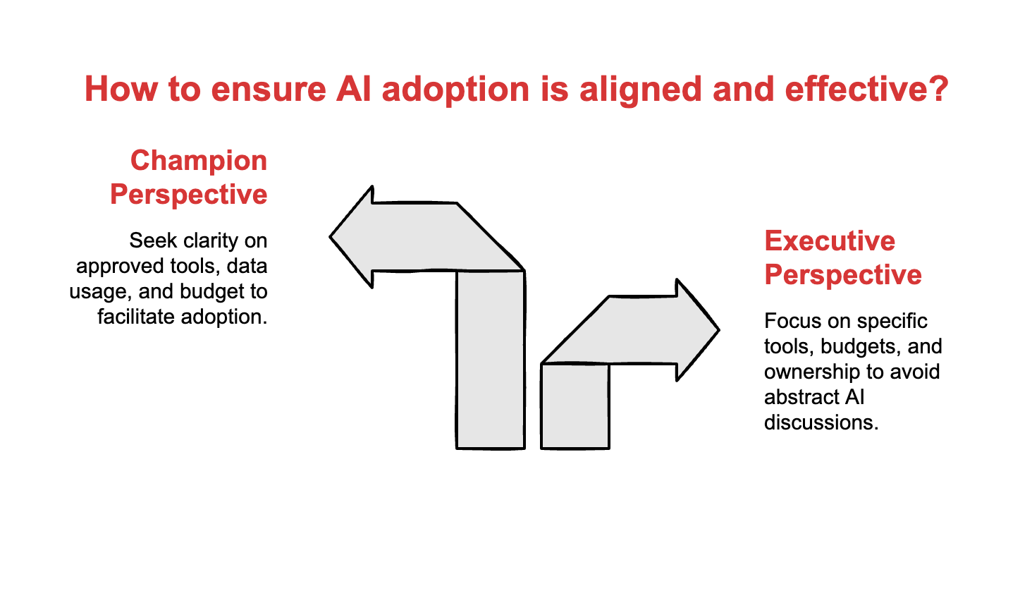 Saying “we need AI” is not the same as approving a budget. Approving a budget is not the same as provisioning tools. Provisioning tools is not the same as establishing clear data governance. And none of it matters without assigning real ownership to people with actual authority to drive change.