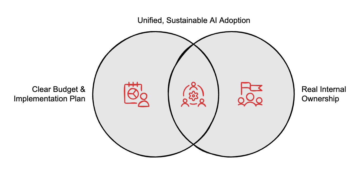 Without these two things, you get fragmentation. You get shadow AI. You get frustration. And eventually, you get an initiative that nobody officially killed but nobody is actually driving.