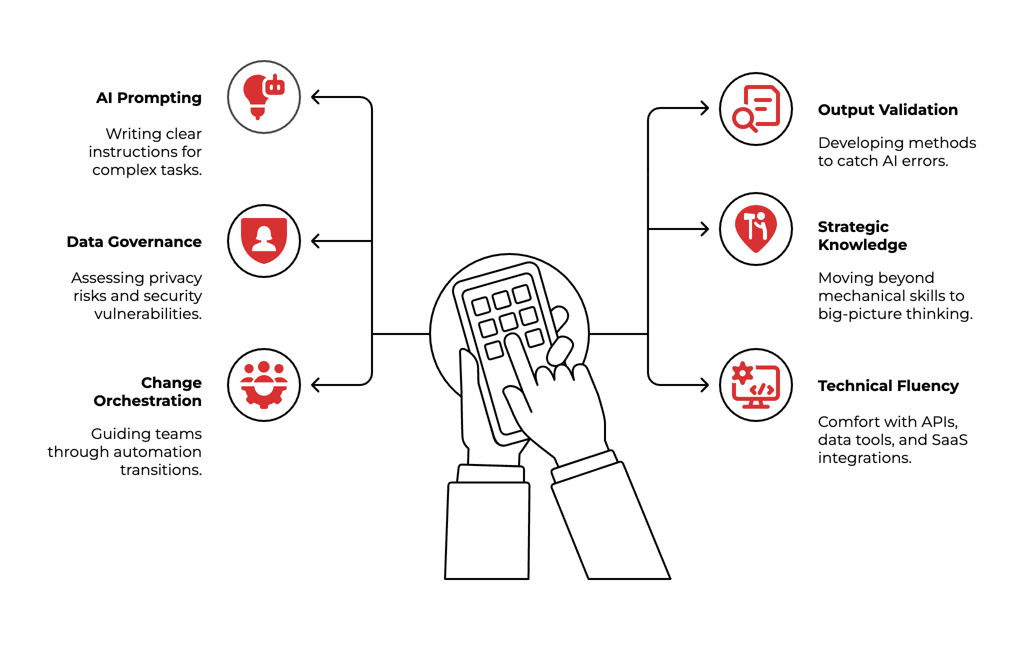 Moving beyond mechanical skills to big-picture thinking. Asking the right business questions. Identifying opportunities that AI automation creates rather than just replacing old tasks with new tools.