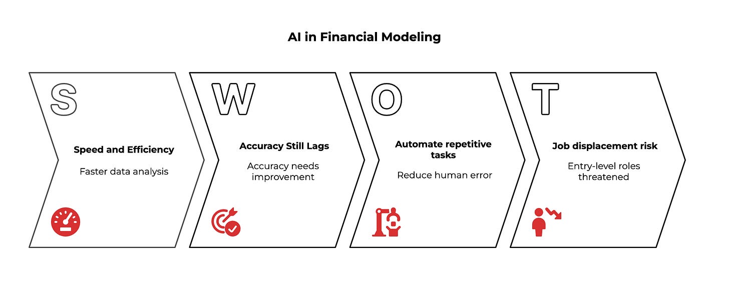 Companies still need financial models. They still need data analysis. They still need strategic thinking about numbers. They just don't need humans to move the numbers around spreadsheets anymore.