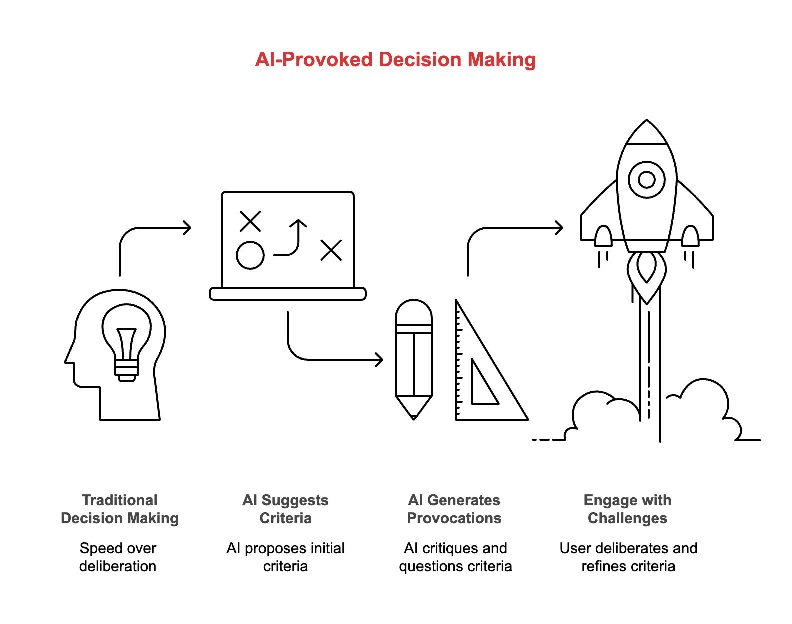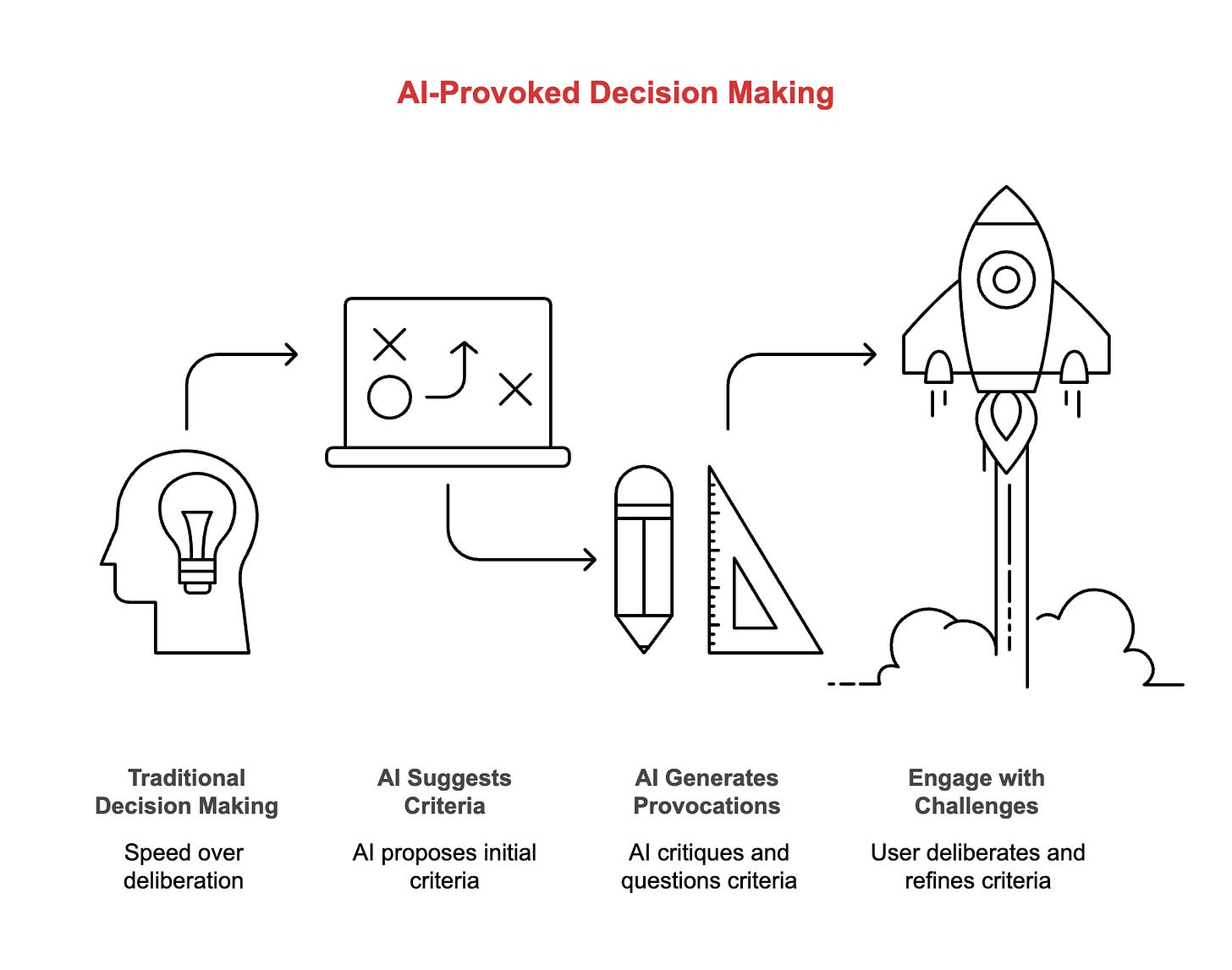 Their spreadsheet prototype works like this: AI suggests shortlisting criteria and sorts data. Then generates provocations for each criterion—short critiques questioning relevance, highlighting hidden biases, suggesting overlooked alternatives. You engage with challenges before finalizing.