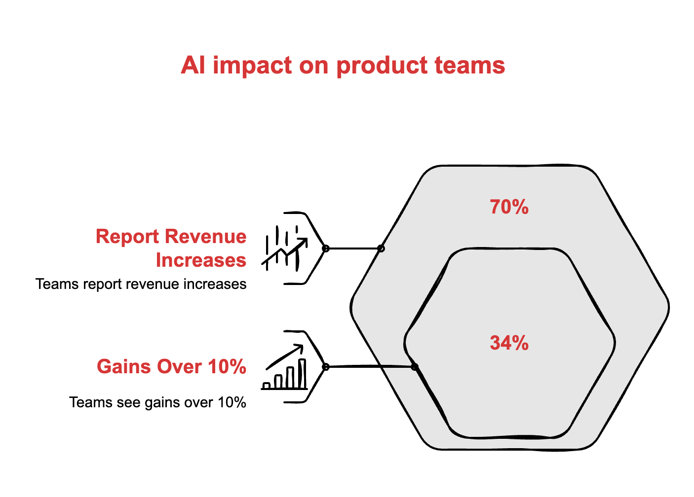 McKinsey found 70% of product teams using AI report revenue increases. 34% see gains over 10%. Supply chain teams cut costs by 20%+ in 61% of cases.